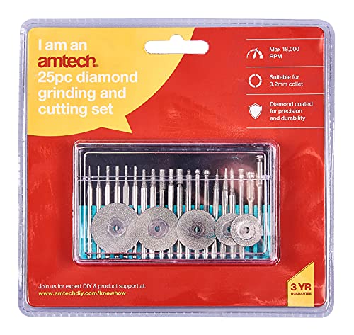 Am-Tech - Set di 25 punte per fresatura diamantate, codolo 1/8"