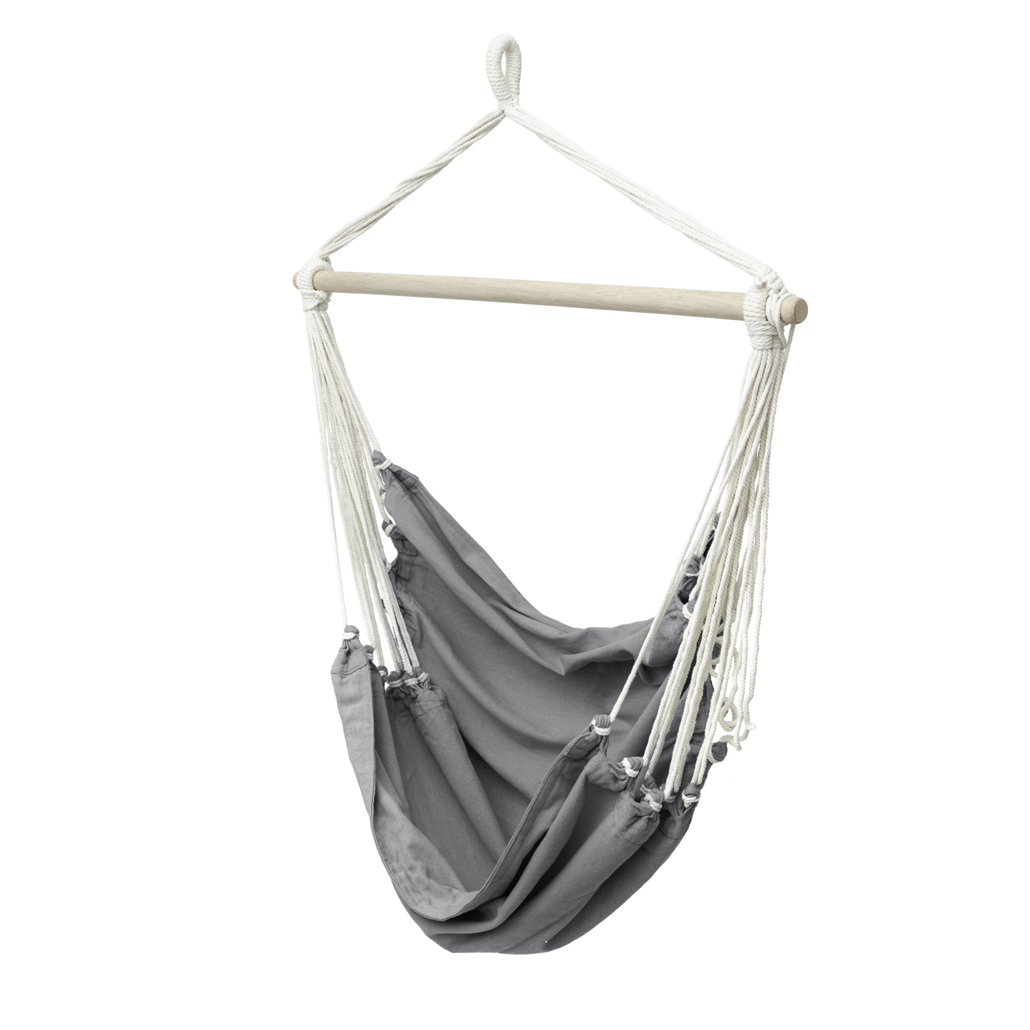 Completa i tuoi spazi all'aperto con originalità e il massimo comfort con questa pratica amaca della linea Cuenca. Potrai immergerti nella natura del tuo giardino o nella tranquillità del tuo terrazzo cullandoti dolcemente. La poltrona sospesa ti permette infatti di sostenerti con la massima sicurezza e di oscillare garantendoti un riposo all'aria aperta davvero insuperabile. La seduta è realizzata in morbido policotone completando con un tocco di stile il design di questo accessorio d'arredo esterno. Struttura non inclusa. Dimensione prodotto: 130x100x3,3 cm. Colore seduta: grigio. Portata massima: 110 kg.