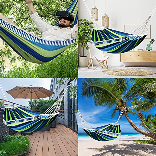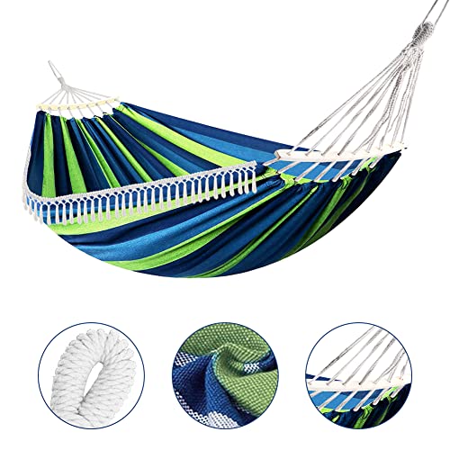 Amaca da Campeggio, RANJIMA Amaca Swing Cotone per Il Campeggio da Viaggio, Durevole Amaca per Viaggi, Portatile Amaca Doppia da Esterno per Campeggio/Viaggio/Balcone/Giardino/Spiaggia/Escursionismo