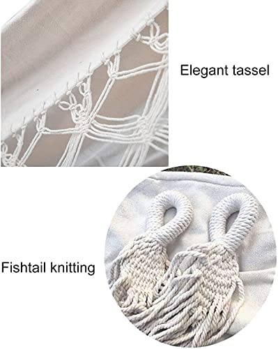 Qualità fatta a mano: l'amaca in tela bianca è realizzata in tessuto spesso 320 g/m², resistente, di alta qualità, 100% cotone con frange eleganti. Realizzato a mano e intrecciato per garantire resistenza e durata. Dimensioni: la lunghezza totale dell'amaca (dal loop al loop) è di 290 cm, mentre l'area di riposo del letto è di 200 cm x 150 cm, il che lo rende perfetto per le coppie. Peso di 1,8 kg e può contenere fino a 200 kg.
