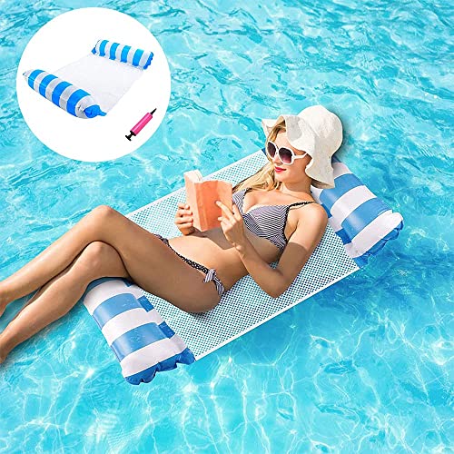 Amaca Gonfiabile, 1 Pcs Amaca Gonfiabile Lettino Galleggiante, Amaca da Mare Gonfiabile con Pompa, Versatile Piscina, per Spiaggia Piscina Festa d'Acqua Vacanze (Blu)
