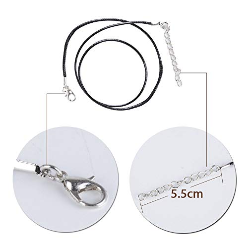AMACOAM 30 Pezzi Filo Cotone Cerato 2 mm Cordoncino Collana Cotone Nero Chiusure per Collane Cordino per Collane con Catena di Estensione e Catenaccio per Fai da Te Monili Che Fanno Pendenti Argento