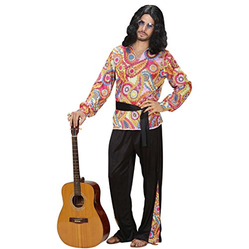 Amakando Costume Anni '70, Pantaloni da Hippy, Multicolore, Taglia XL, 54, Hippy, Camicia, Pantaloni, Cintura, Hippie da Uomo, Costume di Carnevale Anni '70s Flower Power