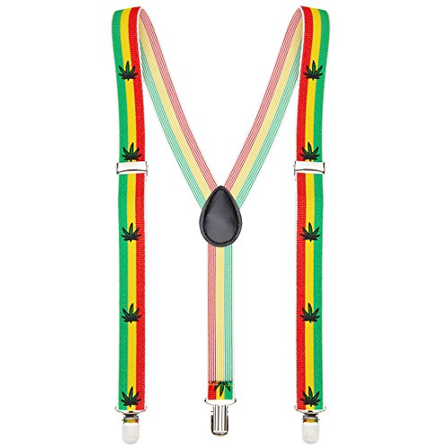 Amakando Panciotto Stile Reggae Bretelle Motivo Giamaica Colorate Straccali a Y Motivo Spinelli Accessorio Costume rastafariano Elastici per Pantaloni Hippie Reggi Pantaloni da Uomo Motivo Canapa