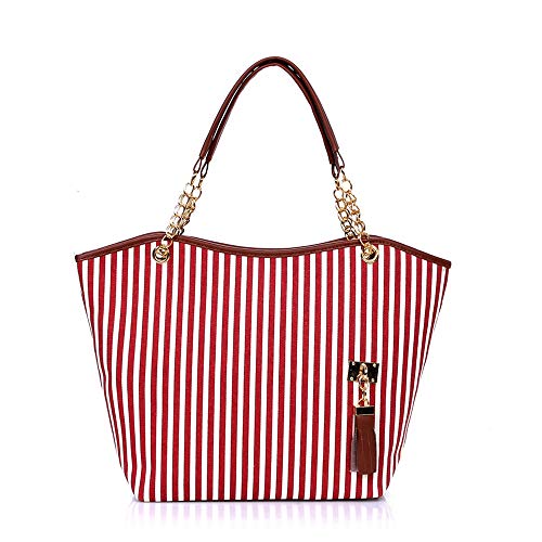 Amandy Donna borsetta Borsa a tracolla Messenger Bag Borsa da spiaggia Borsa per cosmetici Borsa da viaggio Borsa da spiaggia Tassel new retro Grande capacità Pacchetto madre striscia (red)