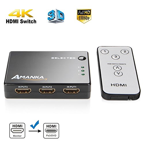 AMANKA Interruttore splitter 3D Risoluzione Hdmi 4 KX2 K e 3 X 1 Hub 3 ingressi 1 uscita con telecomando per laptop, HDTV, DVD, PS3 e Xbox 360