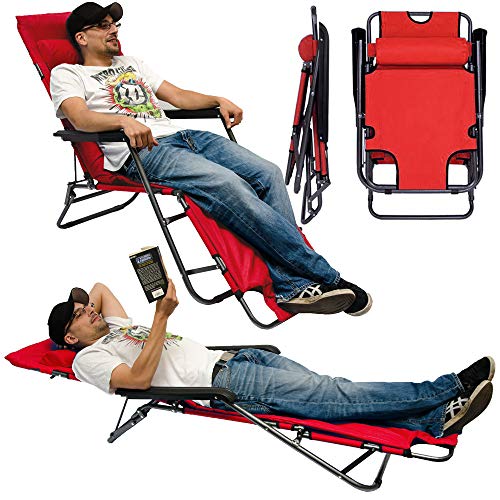 Funzione di seduta e di consegna: la sedia a sdraio pieghevole di Amanka può essere trasformata in un batter d'occhio in un letto da campeggio. Ideale da portare con sé. Per spiaggia, campeggio, giardino, terrazza o balcone.