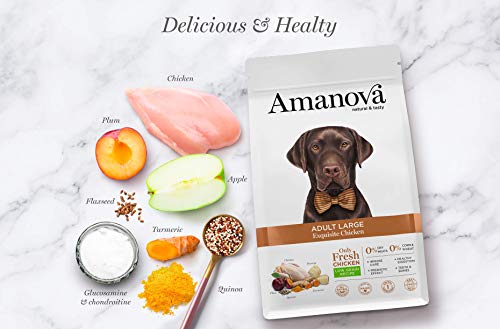 Amanova Cibo Secco Super Premium per Cani Adulti Taglia Grande Gusto Pollo - 100% Naturale, ipoallergenico e monoproteico - Low Grain - Cruelty Free - Formato da 12 kg