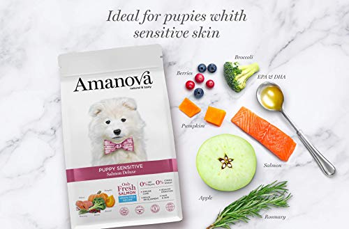 Amanova Cibo Secco Super Premium per cuccioli con pelle e pelo sensibili Gusto salmone - 100% Naturale, ipoallergenico e monoproteico - Grain Free - Cruelty Free - Formato da 2 kg