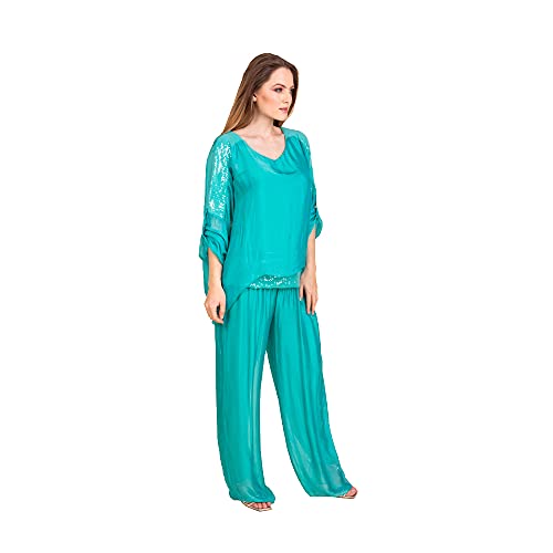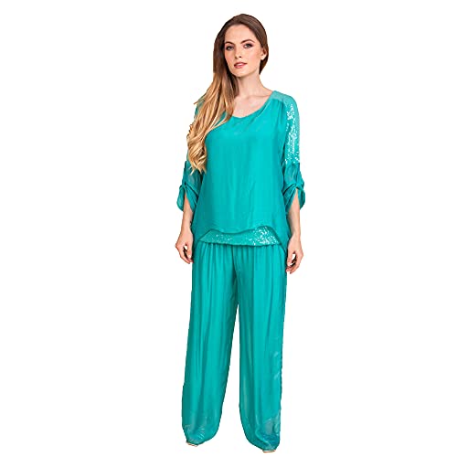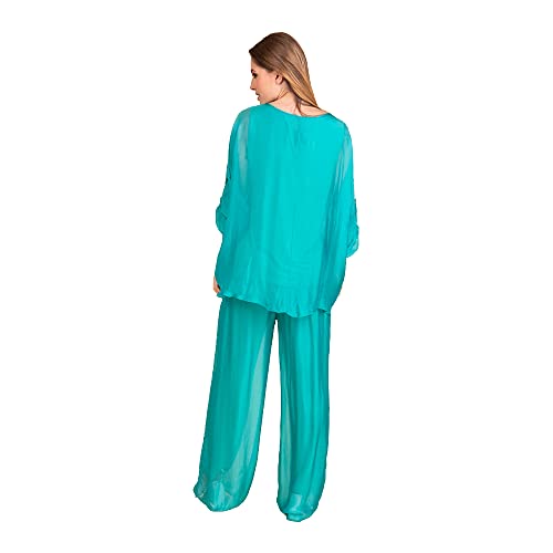 Amara Completo Positano Pantalone e Blusa in Seta (S/M, Verde Acqua)