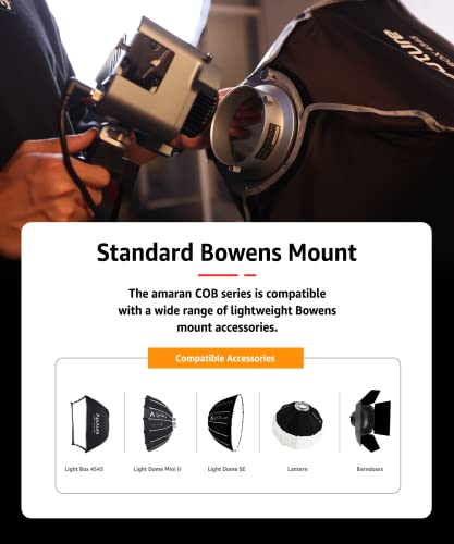 ✨【Supporto universale per accessori】L'attacco per accessori dell'amaran 60x S è compatibile con un'ampia gamma di modificatori di luce morbida con attacco Bowens (carico massimo ≤ 2,5 kg), tra cui Aputure Light Box 4545, Light Dome SE, Light Dome Mini II e Lantern. Il design del foro dell'ombrello consente comunque di utilizzare un attacco tradizionale per luci morbide.