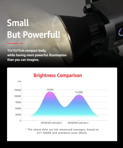 ✨【Piccolo ma potente】 L'amaran COB 60x S è una sorgente puntiforme a LED ultracompatta, piccola come una macchina fotografica, che pesa solo 695 g e misura poco più di 11x11x11 cm (senza contare la staffa). Con un'incredibile potenza di 65W a doppio colore, dispone anche di un controllo dimming dallo 0% al 100% (2.700K-6.500K CCT) per garantire sempre il giusto livello di illuminazione per la scena.