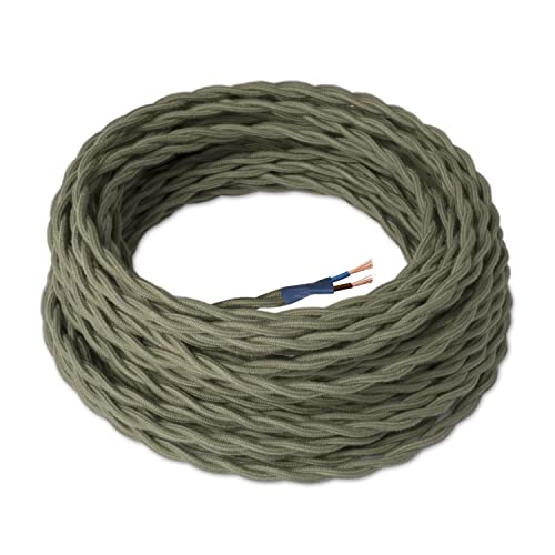 Amarcords - Cavo elettrico tessile colore SALVIA, trecciato, lino, 3 metri, a 2 conduttori 2x0,75 - Filo rivestito in tessuto colorato vintage per lampade lampadari applique e abat jour.
