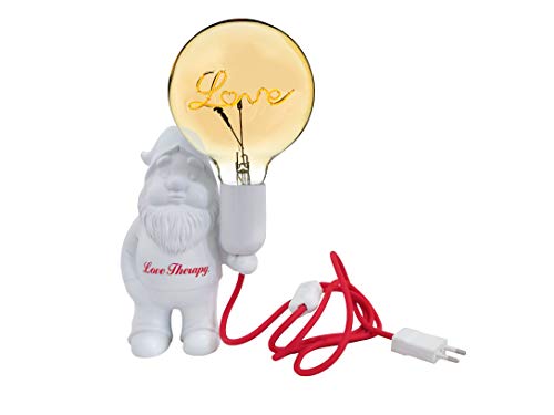 AMARCORDS-LOVE THERAPY. Lampada da tavolo nano in ceramica bianca. Lampadina e27 Led Globe ""LOVE"" inclusa. Cavo da 1,5m con interruttore.