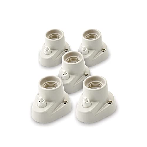 Amarcords - 5 Plafoniere in porcellana con pulsante attacco e27 base applique con interruttore portalampade vintage colore BIANCO