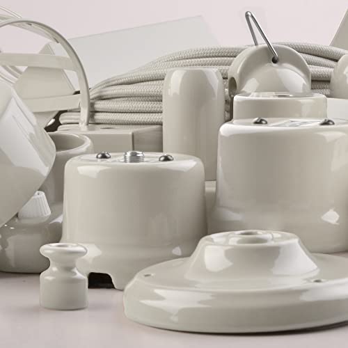 Amarcords - Presa elettrica in porcellana bipasso 10/16 ampere. Presa di corrente bivalente vintage in ceramica colore BIANCO