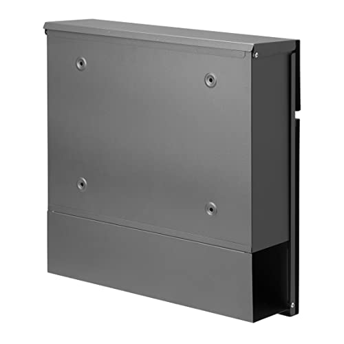 AMARE Cassetta delle lettere di design con scomparto per giornali e numero civico, 37 x 37 x 10 cm, acciaio inox antracite, 1
