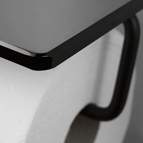 AMARE Portarotolo di carta igienica di lusso con ripiano in vetro | Nero | Porta rotolo di carta igienica forato o incollaggio | Acciaio inossidabile e vetro | Mensola come supporto per telefono