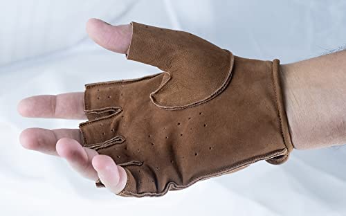AMAS The Best GUANTI DA GUIDA MEZZE DITA EPOCA HALF FINGER IN VERA PELLE NABUK AUTO BICI VINTAGE CAFE' RACER