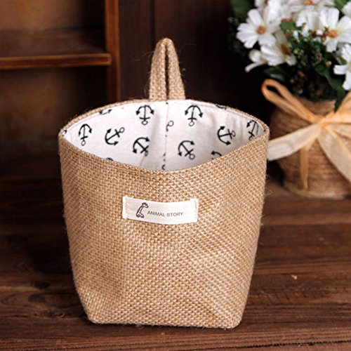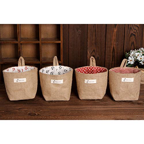 Amatt - 4 borse portaoggetti da appendere, in cotone e lino, con manico, pieghevoli, per trucchi, chiavi e piccoli oggetti