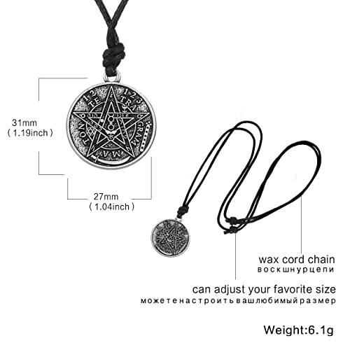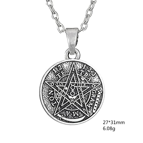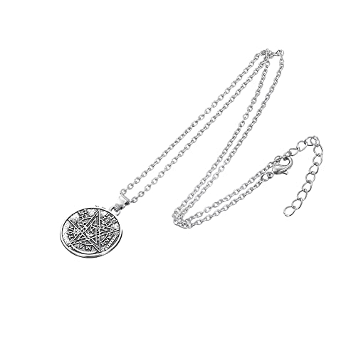 Amaxer Tetragrammaton Pentacolo Collana Retro Talismano per Amore Sigillo di Salomone Wiccan Pagan Amuleto Pentagramma Pendente Gioielli (Catena in acciaio inossidabile argento)