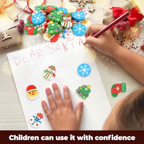 【Bomboniere di Natale】I colori vivaci e gli affascinanti design degli elementi natalizi rendono queste simpatiche gomme da cancellare un'aggiunta pratica ma adorabile a un set scolastico o a una scatola di ricompensa per i compiti. I bambini di tutte le età adoreranno usare queste gomme morbide per scrivere lettere ai loro amici, finire un tema o completare un disegno creativo. Le gomme da matita per le vacanze invernali aggiungeranno abbastanza per aggiungere un'atmosfera festosa.