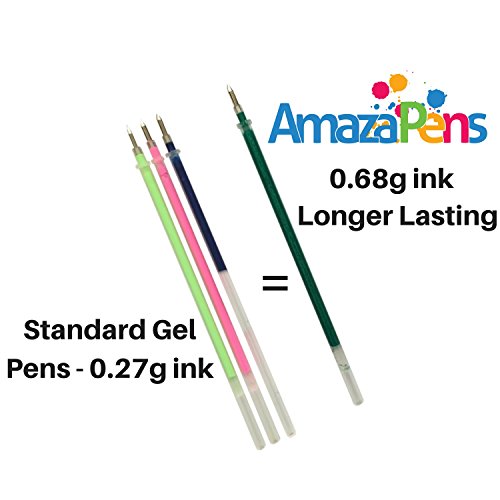✅ Inchiostro maxi: allargando il tubo interno, queste penne sono confezionate con la maggior quantità di inchiostro possibile in una penna gel standard. Durano 2,5 volte più a lungo rispetto alle altre penne gel, in modo da poter scrivere, disegnare e colorare più a lungo