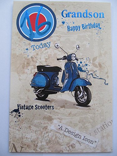 Amazing Colourful vintage ciclomotore scooter nipote 16 ° compleanno cartolina di auguri