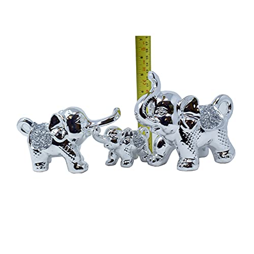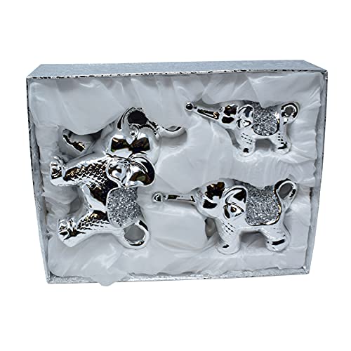 Amazing Gift Set di 3 ornamenti per la famiglia di elefanti con diamanti schiacciati, in ceramica argento lucido