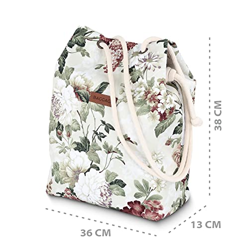 Amazinggirl Borse a secchiello borsa da donna A4 - borsa a tracolla tote bag borse in tessuto con tasca interna tote Fiori beige