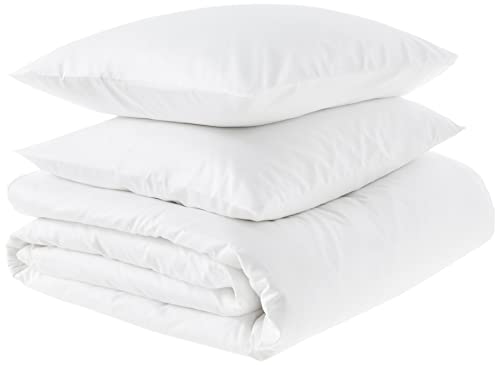 Amazon Aware Set con copripiumino in rasatello da 300 fili in tessuto 100% cotone biologico - 3 unità, Bianco, letto king-size, 230 x 220 cm, Tinta unita