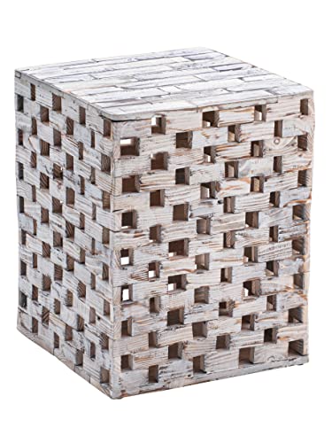 Amazon Aware, Sgabello e supporto per piante per esterni in legno riciclato, a scacchi, 38 x 38 x 48 cm bianco con venature