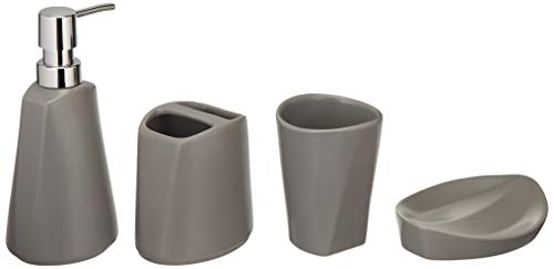 Amazon Basics - Set di accessori da bagno in ceramica, 4 pezzi - Grigio