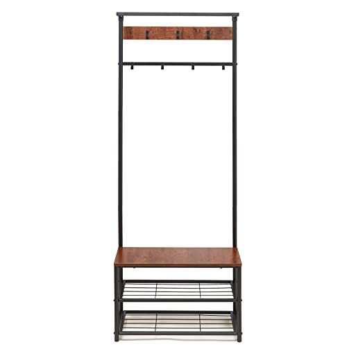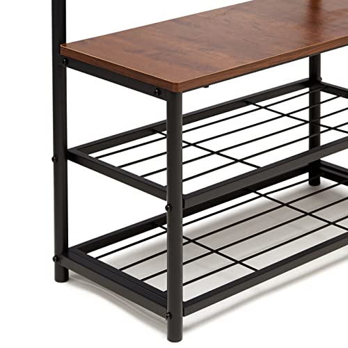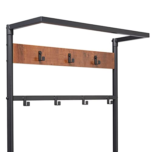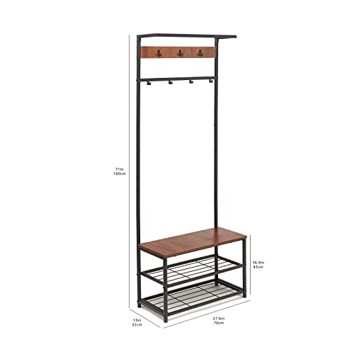 Amazon Basics - Appendiabiti con sette ganci, panca e tre ripiani per riporre le scarpe, Nero, 70.1 cm x 33 cm x 180.3 cm
