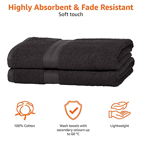 Amazon Basics - Set di 2 asciugamani da bagno che non sbiadiscono, colore Nero