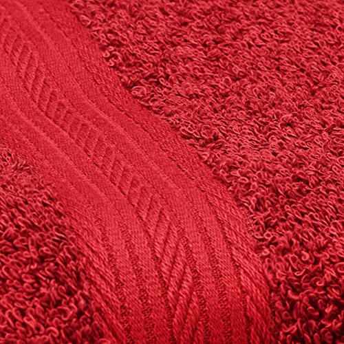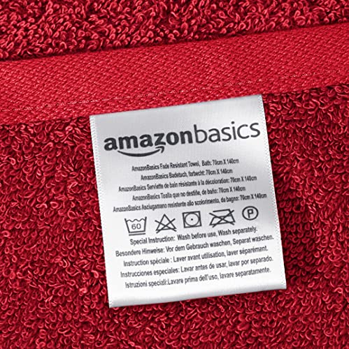 Amazon Basics - Set di 2 asciugamani da bagno e 4 asciugamani per le mani che non sbiadiscono, colore Rosso