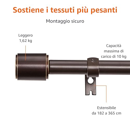 Amazon Basics - Bastone da tenda con terminali cilindrici, da 182 fino a 365 cm, Bronzo