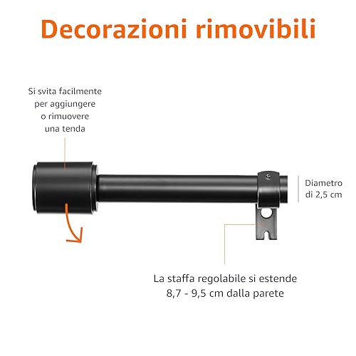 Il supporto per il fissaggio al muro incluso permette di regolare la distanza dalla parete, in modo da evitare gli ostacoli o per creare spazio aggiuntivo tra il muro e il tendaggio