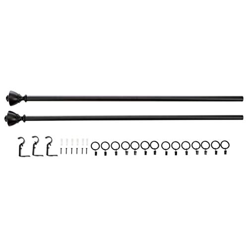 Amazon Basics - Bastone per tenda, con terminali a urna, da 91 a 183 cm + anelli per tenda da 35,6 cm, diametro 2,5 cm, nero