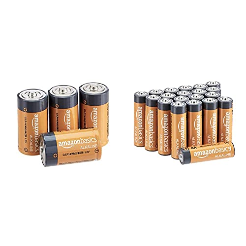 Amazon Basics Batterie alcaline mezza torcia, 1.5 volt, per uso quotidiano & Batterie alcaline AA 1.5 Volt, Performance, confezione da 20