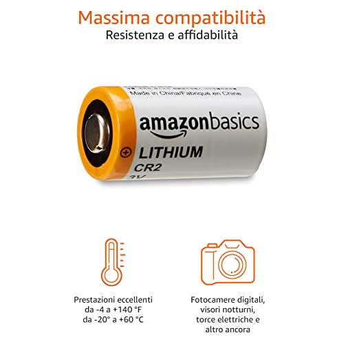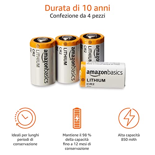 Amazon Basics, batterie al litio CR2, da 3 V, Confezione da 4