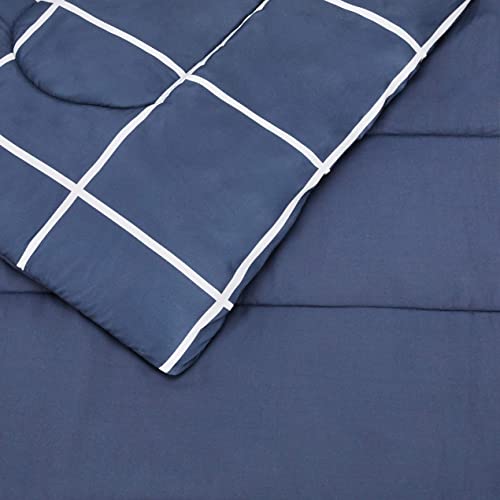 Amazon Basics - Set di biancheria da letto in microfibra leggera 5 unità, Una piazza e mezza/Doppio XL, blu marino, Geometrico