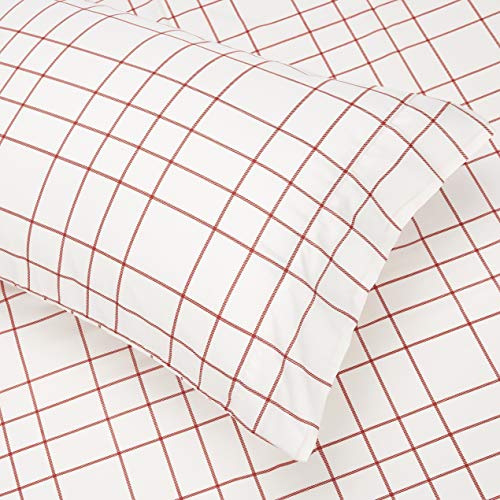 Amazon Basics - Set di biancheria da letto in microfibra leggera, 7 pezzi, con motivo a righe rosse