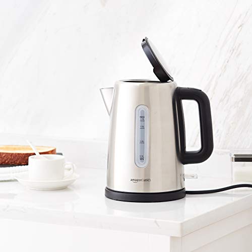 Amazon Basics - Bollitore elettrico portatile, in acciaio inox, 1,7 litri, argento