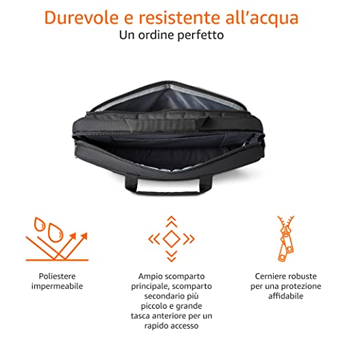 Amazon Basics - Borsa a tracolla per laptop compatto, custodia per il trasporto con tasche per riporre accessori, 44 cm, 1 unità, confezione da 1, Nero
