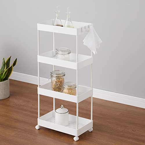 Amazon Basics Carrello portavivande con ruote, 4 ripiani, White