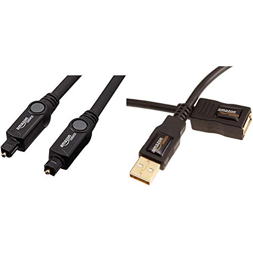 Amazon Basics - Cavo audio ottico digitale Toslink, 3 m & Cavo prolunga USB 2.0 A maschio/A femmina (3 m)