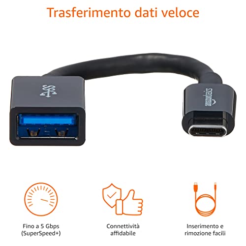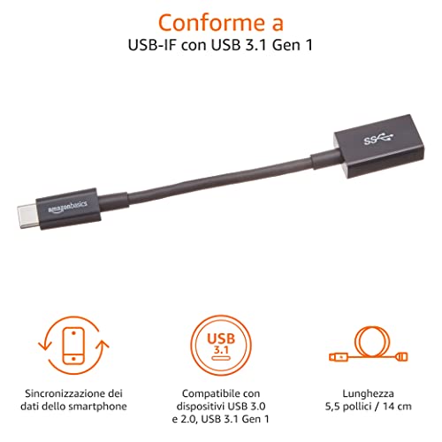 Amazon Basics Cavo convertitore da USB-C a USB-A 3.1 Gen 1 adattatore femmina, velocità 5 Gbps, certificazione USB-IF, per laptop, tablet, telefoni, nero