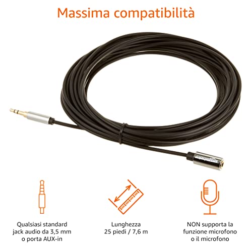 Amazon Basics - Cavo prolunga audio stereo maschio/femmina, 3,5 mm, 7,6 metri