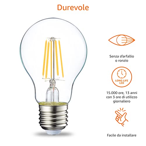 La lampadina è trasparente e unisce la tecnologia moderna a LED con quella tradizionale a filamento per un aspetto affascinante e nostalgico